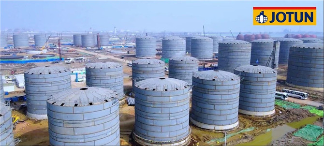佐敦的Tankguard系列儲罐內襯漆和Jotatemp系列耐高溫漆助力了盛虹石化300萬(wàn)立方原油/成品油罐區、全廠(chǎng)管道及設備涂刷。