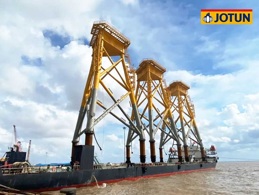 項目總投資102.86億元,規劃容量500兆瓦,水深范圍41-46米,離岸距離55公里。67臺海上風(fēng)機矗立在水深40多米的海里,風(fēng)機基礎結構采用導管架形式,佐敦為整個(gè)項目的導管架涂裝提供了超過(guò)700,000升防腐涂料。