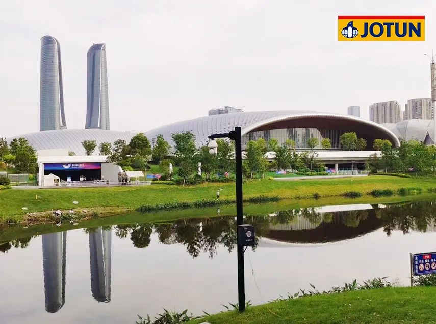 打破人們對于現代建筑冷冰冰的傳統理念,用獨特的月牙懸挑結構創(chuàng )造張力之美,以萬(wàn)鈞鋼之重造就灞河之濱輕盈的月光之美。佐敦以豐富的鋼結構防腐涂刷業(yè)績(jì)和專(zhuān)業(yè)的防腐防火長(cháng)效保護提案,被選定為9萬(wàn)噸鋼結構的防腐防火涂料供應商,特選用佐敦膨脹型防火涂料與氟碳面漆組合,為2萬(wàn)多噸的外露屋蓋鋼桁架保駕護航,實(shí)現“懸浮彎月”的建筑設計效果。